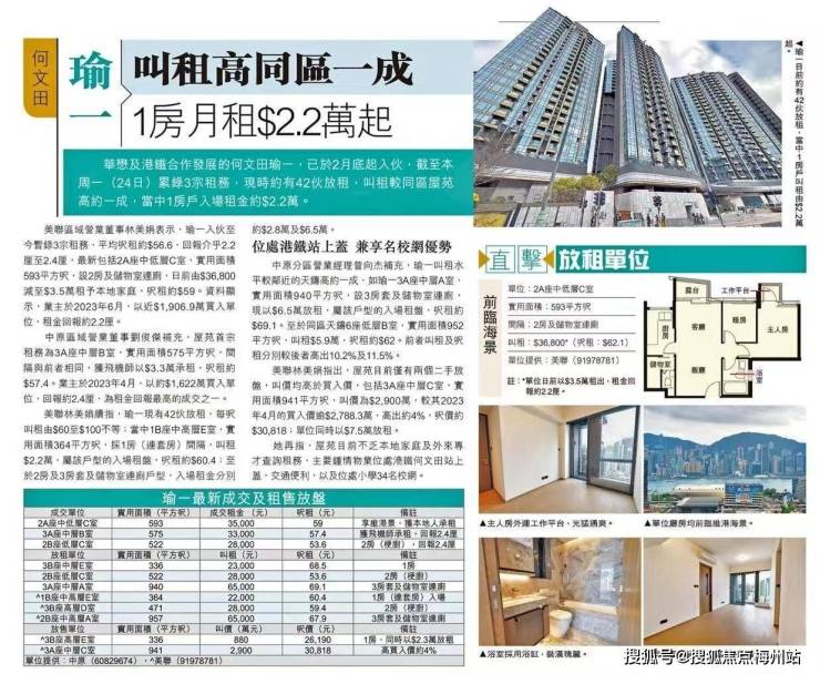 香港房产市场新动态:何文田瑜一1房月租2.2万起!