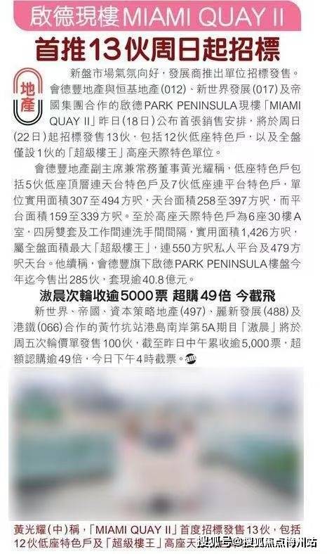 由相同发展商打造的黄竹坑站「滙晨」项目次轮发售出现"50人抢1伙"的盛况(收票5000+,超额49倍),反映市场对优质地铁上盖资产的渴求。业内人士预测,MIAMI QUAY II凭借现楼优势及更稀缺的产品设计,认购热度或将再创新高。