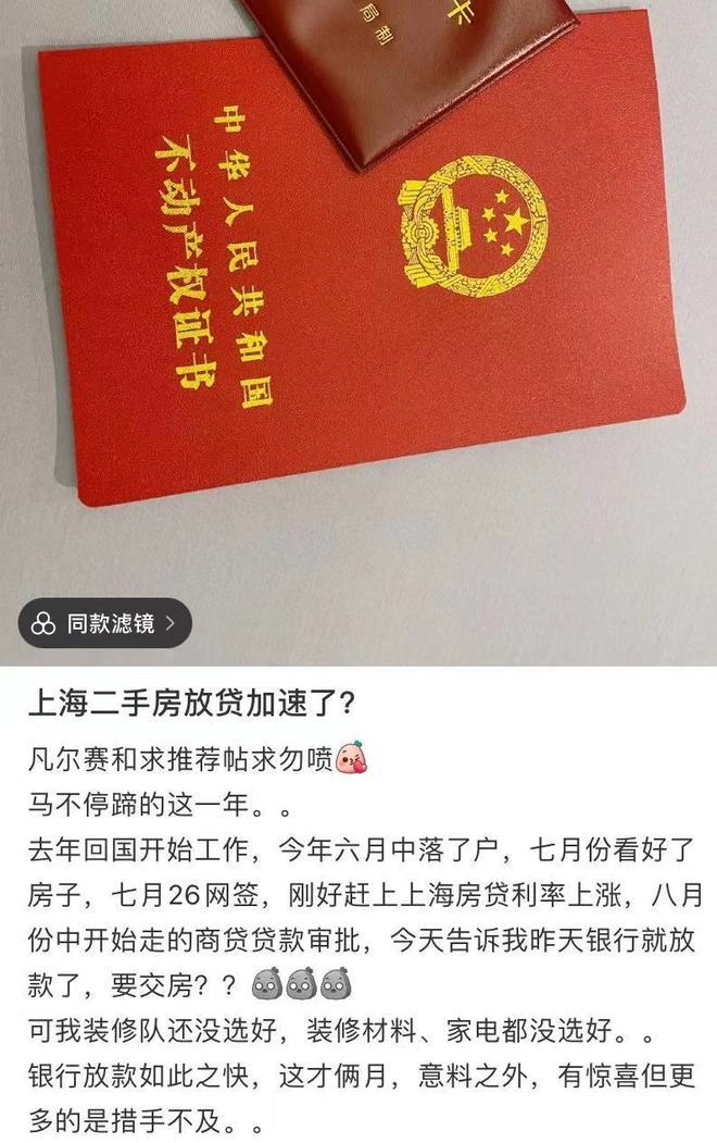 “意料之外,我8月中旬开始走的商贷贷款审批,当时告诉我至少要等到明年1月,没想到这才俩月,银行就放款了。”沪上一位二手房购房者没有想到,银行放款速度居然如此之快。