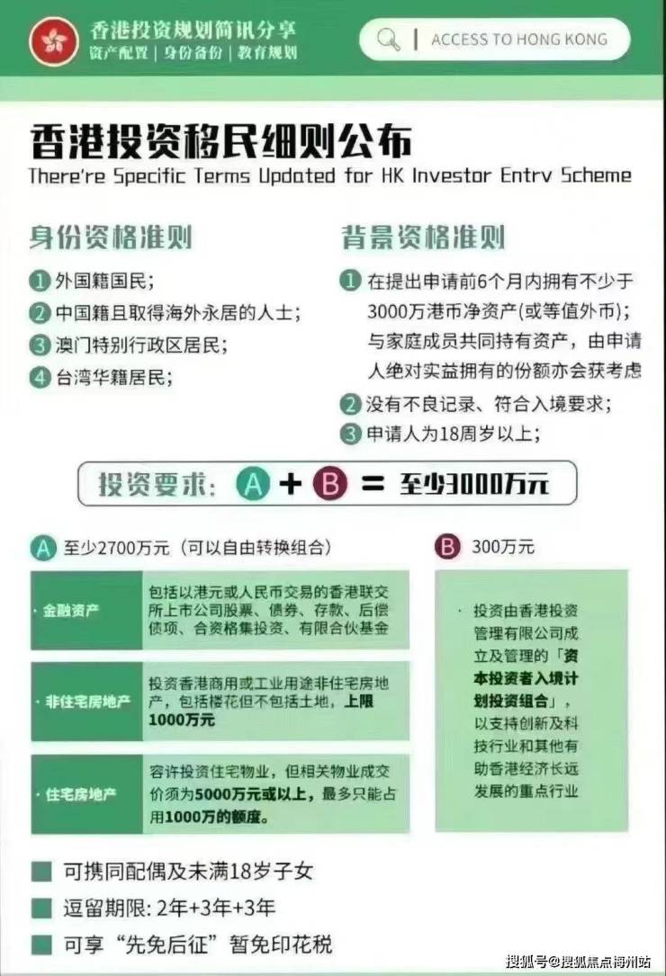 近期,香港投资移民细则全新公布,为众多有意向通过投资移民香港的人士带来了新的指引。这一细则的出台,不仅明确了投资移民的各项要求,也为投资者规划香港发展之路提供了清晰的方向。