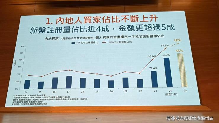 在人民币国际化和美元加息周期的较量中,香港楼市成了国际资本套利的战场。2023年美联储连续加息,但香港的最优惠利率却还维持在4.25%的历史低位,这种利率倒挂催生了“拆息房贷”产品,一下子吸引了大量跨境资金涌入。某原地产的数据也显示,2024年上半年内地买家的成交占比达到了50%,创了十年的新高,而且其中5成买家都选择了5000万港元以上的豪宅项目。