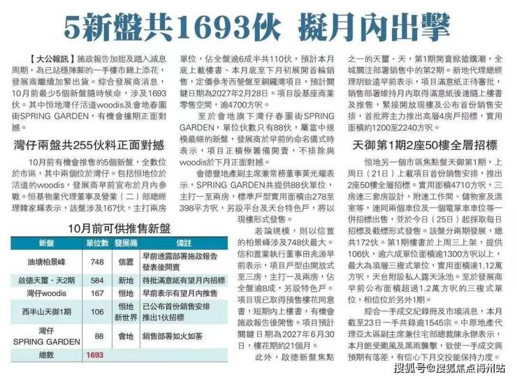 对于购房者而言,本次1693伙房源的集中供应,意味着选择空间更大、议价主动权更强。无论是刚需客想“上车”核心区,还是投资者布局热点新城,都能在这批新盘中找到适配标的。以灣仔SPRING GARDEN为例,现楼发售、特色户型的优势,叠加灣仔的地段价值,具备极强的“自住+投资”属性;而啟德天璽·天2期则坐享啟德新城的发展红利,长期增值潜力可观。