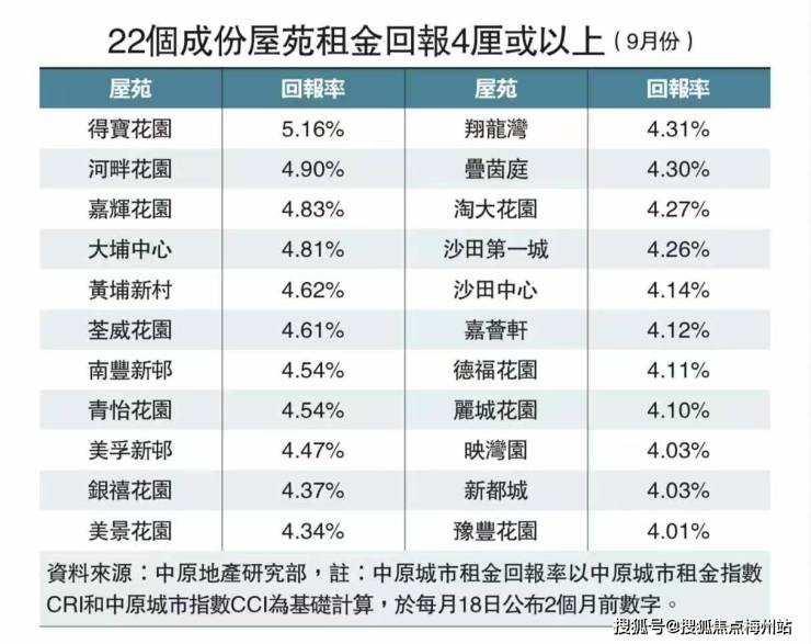 租金回报率一般是用一年的租金收入除以房子总价。比如说,一套房子一年租金 100 万港元,房子总价 1000 万港元,那租金回报率就是 10%。这个比例越高,说明投资赚的钱越多。