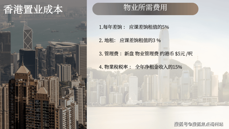 再看地租,这是因为香港的土地大多是政府批租的,业主需要向政府交地租,相当于土地使用费。2023 年之前,地租和差饷是分开算的,2023 年之后调整为 “合并征收”,税率是应课差饷租值的 3%。还是按刚才那套房子算,年应课差饷租值 48 万港元,地租就是 48 万 ×3%=1.44 万港元,每月 1200 港元。差饷加地租,每月总共交 3200 港元,对业主来说压力不算大。不过要注意,如果买的是 “永久业权” 的房子(比如一些老牌豪宅),可能不需要交地租,只需要交差饷,买房时一定要问清楚开发商或中介,避免重复缴费。