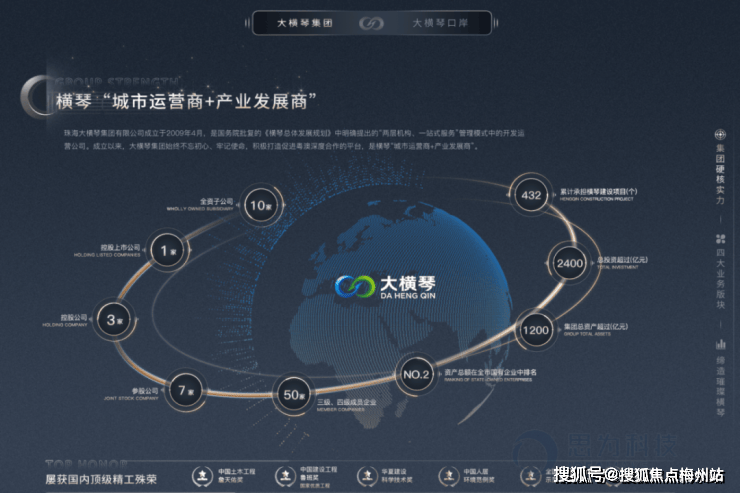 珠海大横琴集团有限公司(简称大横琴集团或集团)是珠海市国资委于2009年4月成立的直属国有企业。成立以来,大横琴集团坚守促进澳门经济适度多元发展的初心使命,是珠海国资国企践行粤澳深度合作的重要载体和骨干力量。截至目前,大横琴集团总资产超2600亿元,累计开发建设项目487个,拥有全资子公司12家、控股上市公司2家、控股公司2家、参股公司11家以及三级、四级成员企业63家。